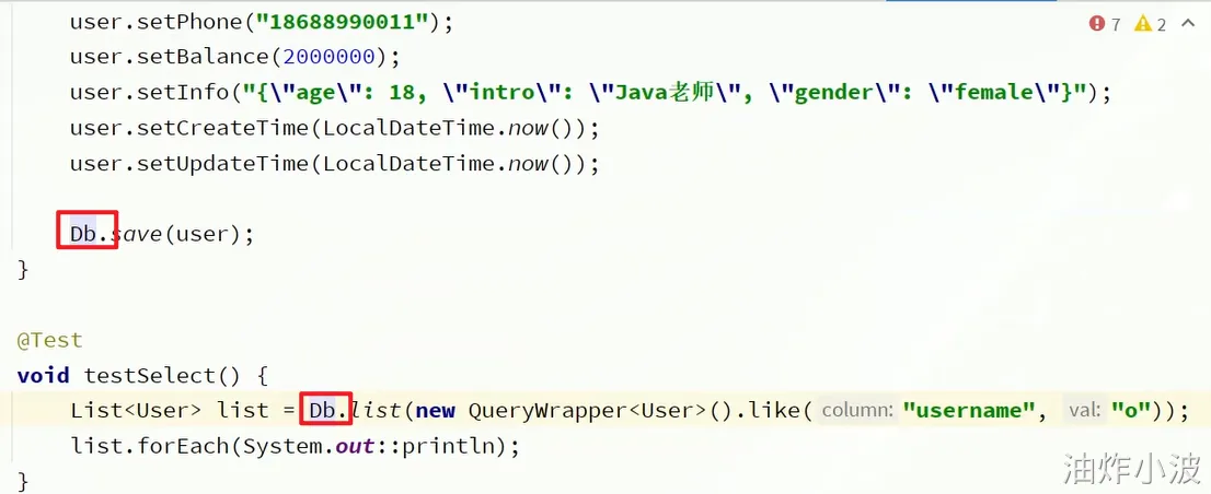 前面我们在mapper层或者service完成了各种CRUD,但是MP也提供了一个静态工具类:Db,这里面也封装了日常需要使用的接口方法,以解决:service之间相互引入,嵌套引入导致的循环依赖问题。其API如下