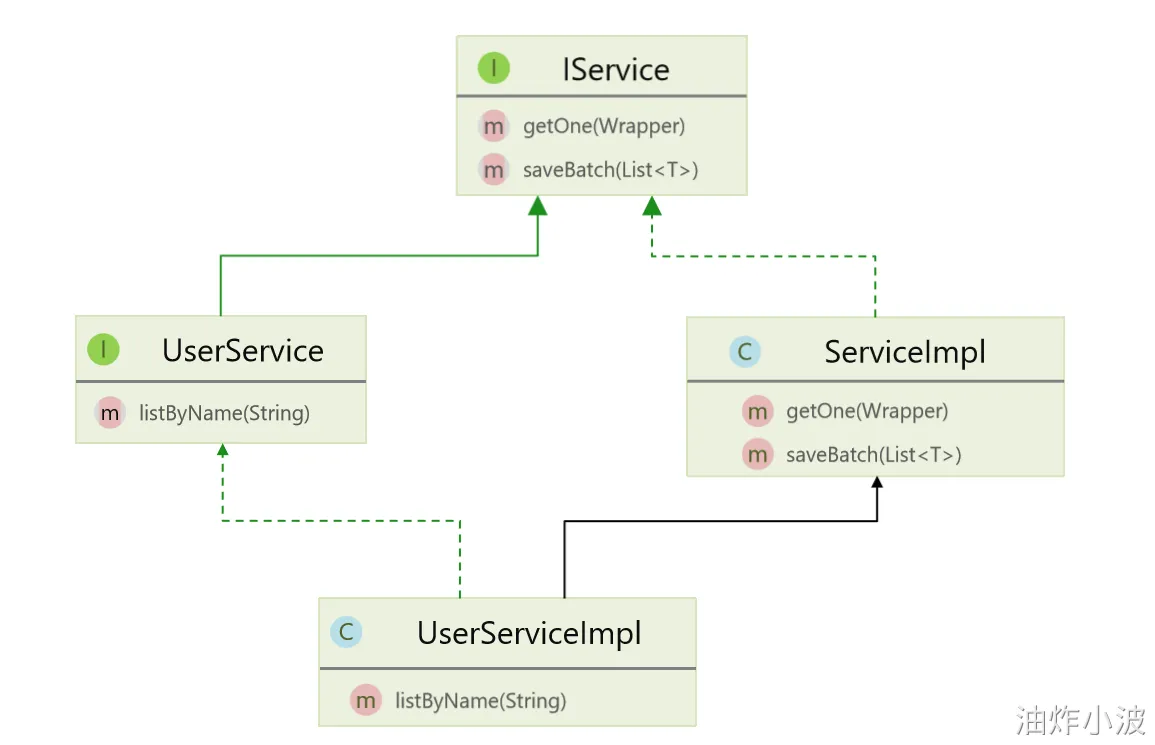 比如上述的批量新增、批量更新、查询单个、批量删除、分页等都是非常实用的。而要去实现这个功能就不能像原来Mapper层一样直接继承BaseMapper了,因为接口是有实现类的,所以我们遵循下面这一套规范: