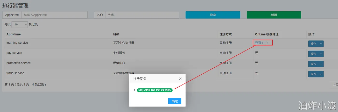 稍等会刷新页面,可以看到注册地址已经有了一个,并且ip就是自己的服务ip