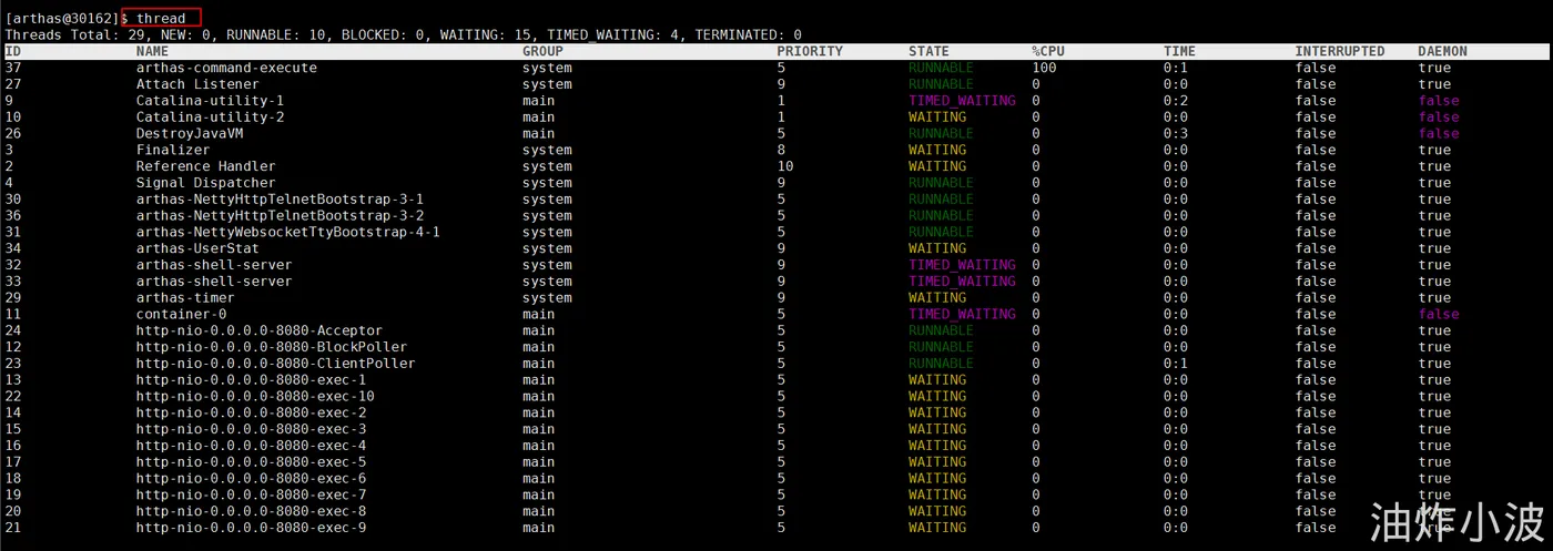 - ID: Java级别的线程ID,注意这个ID不能跟jstack中的nativeID一一对应