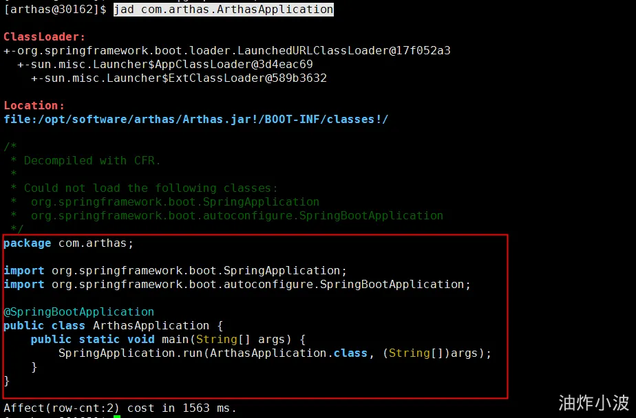 输入:jad + 文件全路径,如我想查看主启动类,则: