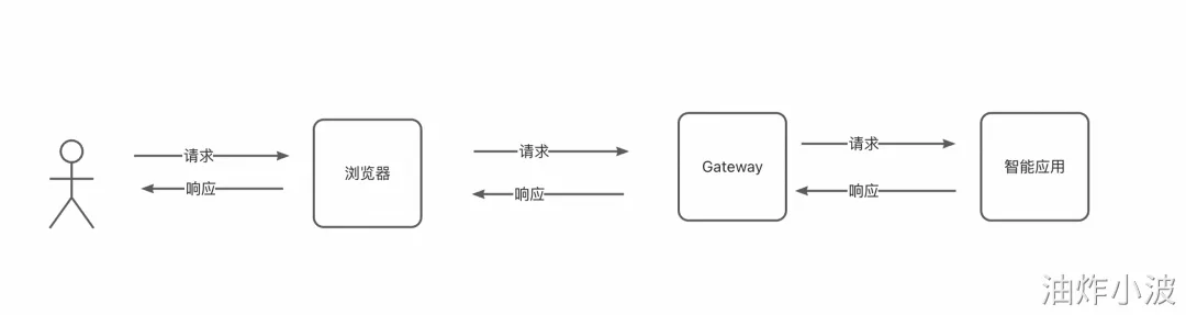 下图以典型的 AI 会话场景为例:用户所连接的 Gateway 不仅需要发送请求,还需要处理推理响应结果,并将结果推送给浏览器,形成完整的交互闭环。