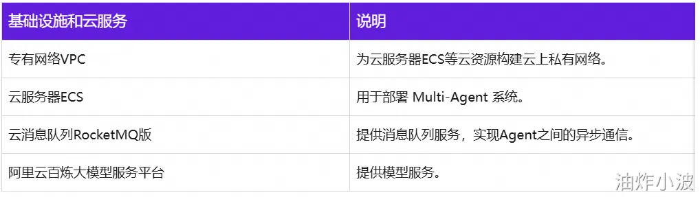 本方案的技术架构包含构建一个完整多智能体应用所需的所有云资源: