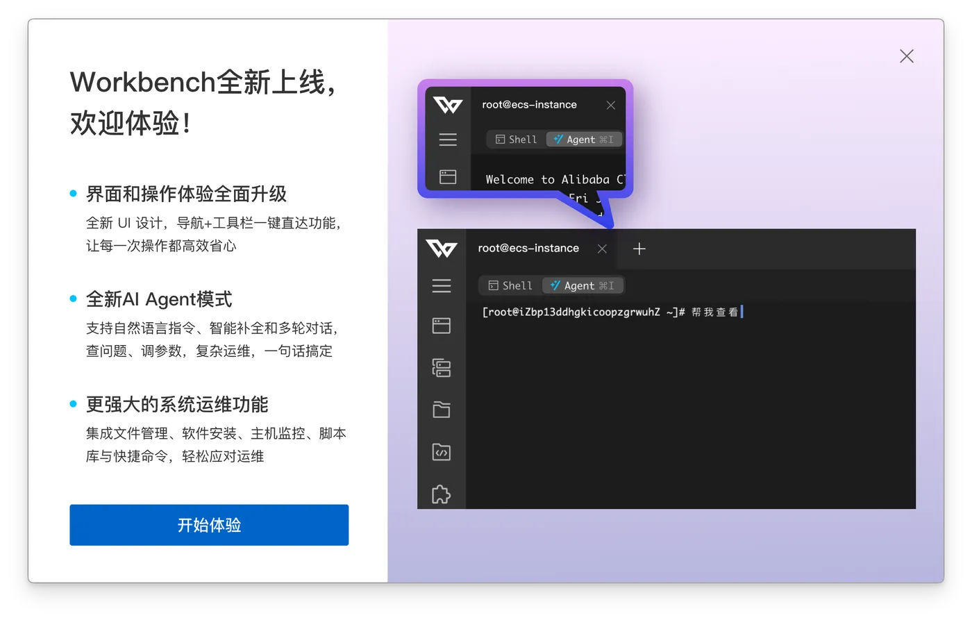 即日起,所有阿里云用户均可在ECS控制台体验Workbench AI Agent模式,开启智能云上运维之旅。