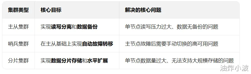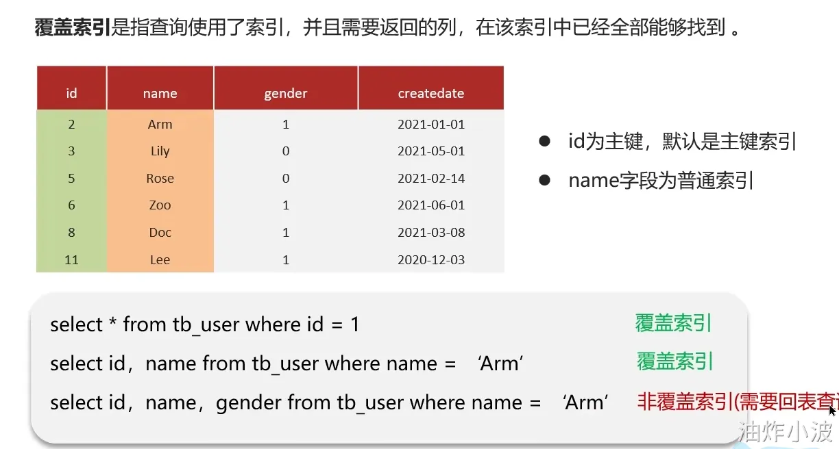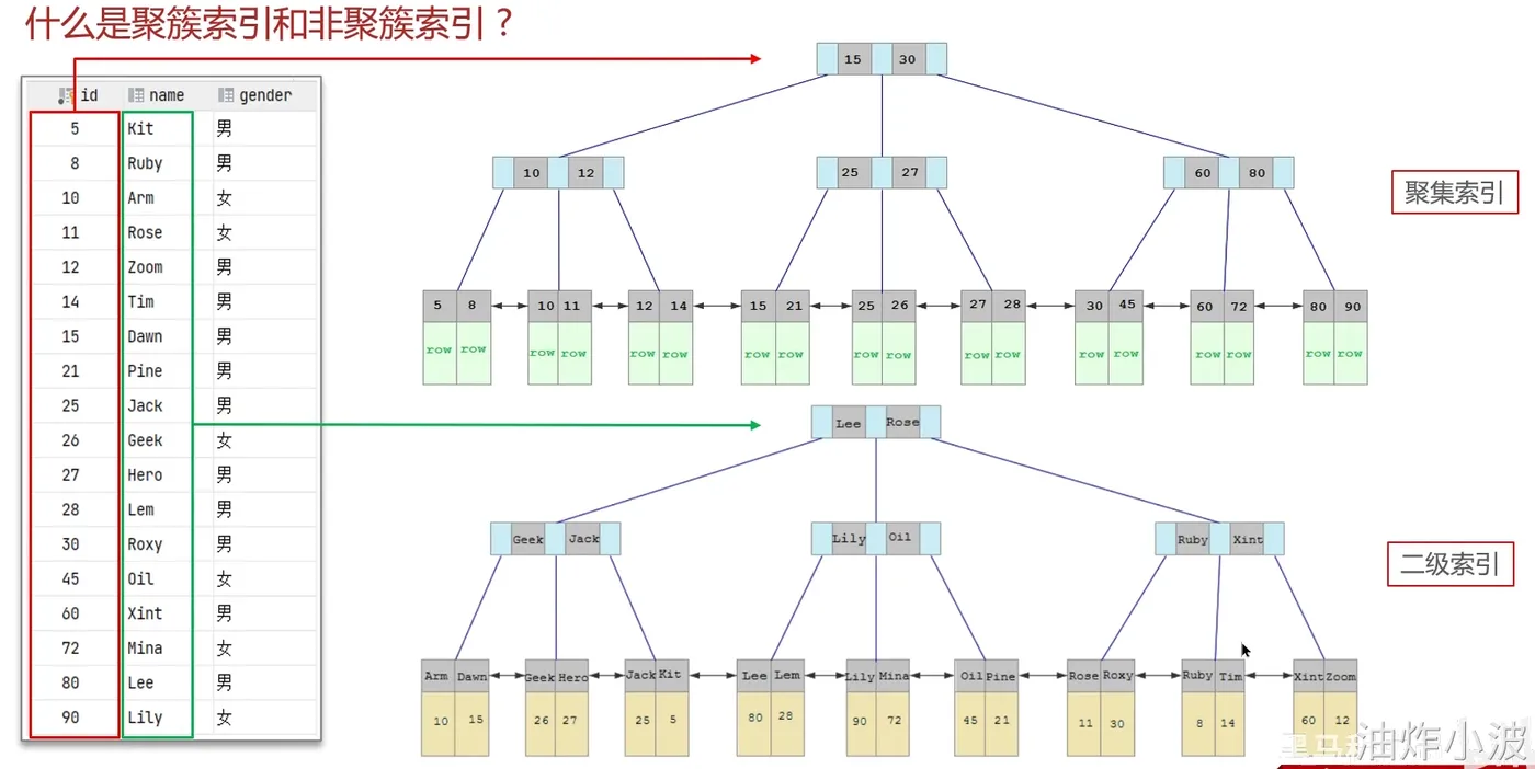 (1)索引类型:主键、唯一、组合;又叫聚簇索引和非聚簇索引(二级索引、辅助索引);
