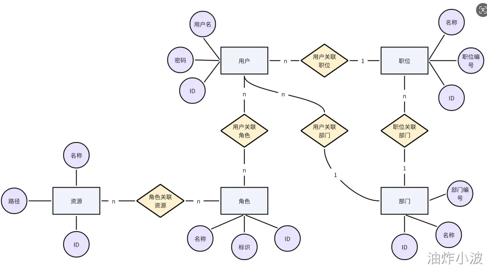 - 面试官,RBAC模型就是经典的用户、角色、资源三张主表,同时增加用户-角色、角色-资源两张中间表,用来记录哪个用户有哪些角色,每个角色有哪些资源;当然在此基础之上,也可以增加部门的,也都是一样的原理,我就不重复赘述