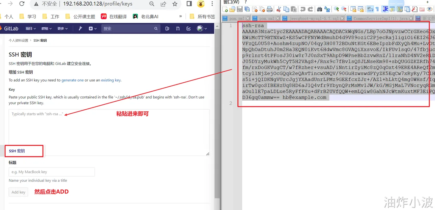 - 去桌面找到后缀是pub的文件,复制里面的内容,粘贴到git即可