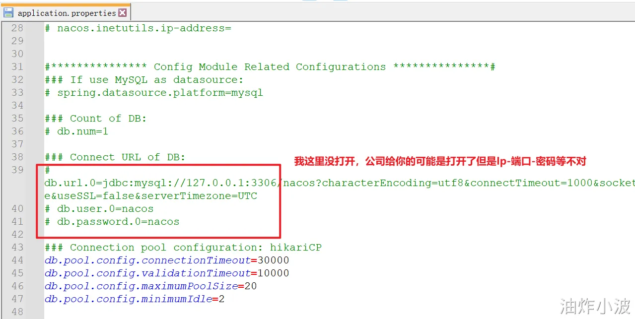 通过上图日志我们可以发现是jdbc的错误,找到对应的conf文件,将里面的数据库配置信息修改成公司的即可