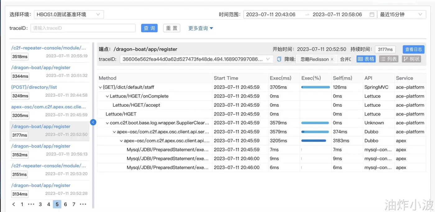 对于日志排查,我们公司是有Skywalking的,只需要测试给我对应的traceId,我输入进去就可以看到完整的调用链路和报错的堆栈信息,然后就可以分析报错原因并修复了