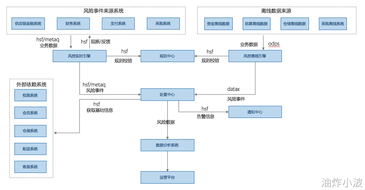数据输入做为产品的业务数据来源,很大部分是外部系统提供。在应用架构图中,按照业务属性、来源关系进行对外部系统进行归类,并将外部的来源系统纳入整个应用架构中。我们知道计算机系统中,数据输入和数据输出是作为一个整体。应用架构中除了输入系统,输出系统做为整个产品的一部分,需要纳入到应用架构图中。