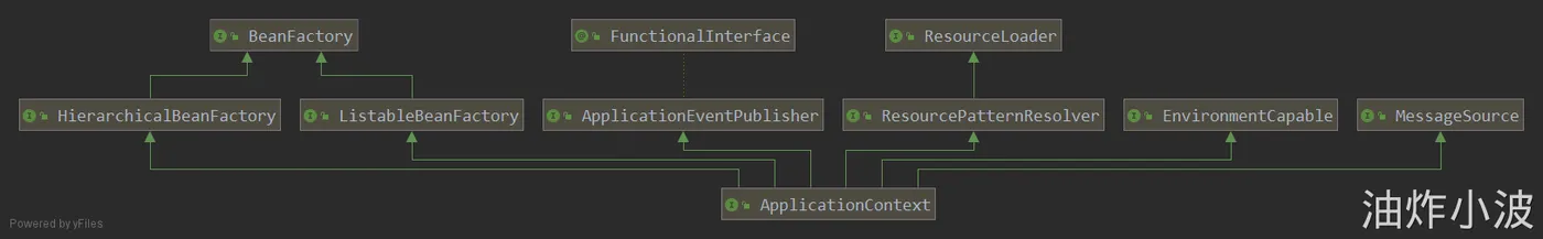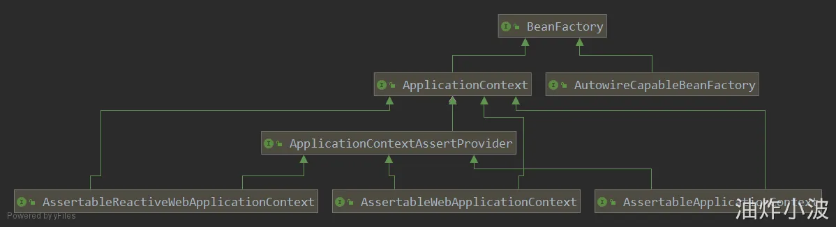 其核心代码简单PO出,依赖BeanFactory,这个BeanFactory就是SpringFramework接口体系中的顶层,定义了基本的方法,如:getBean,containsBean,isSingleton,getType,isTypeMatch等。如下图(体系要比这个更丰富,推荐大家自己在Idea中生成查看,看SpringBoot源码的前提,建议先看Spring源码):