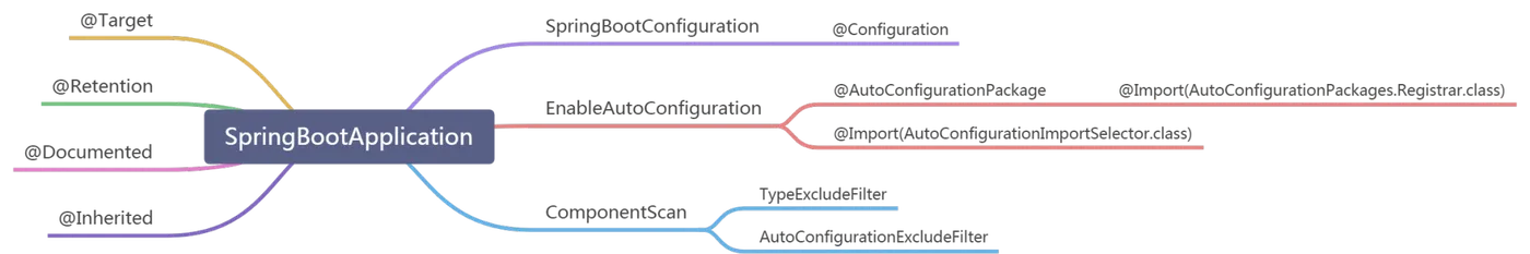 @SpringBootApplication这个组合注解,主要分4个元注解+3个自定义注解:
