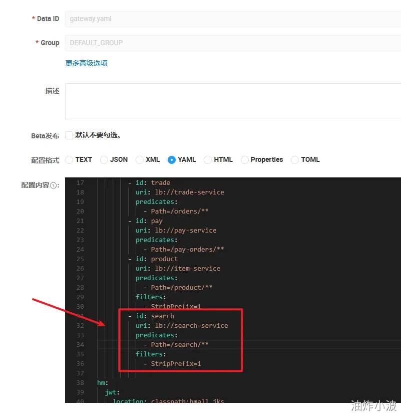 - 访问搜索服务提示404,直接拷贝我的gateway配置文件,替换自己本地即可