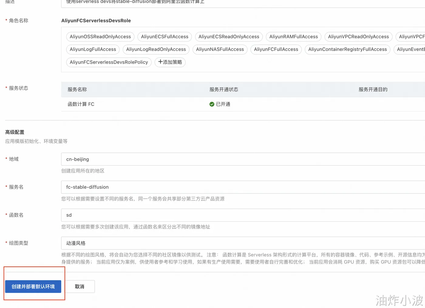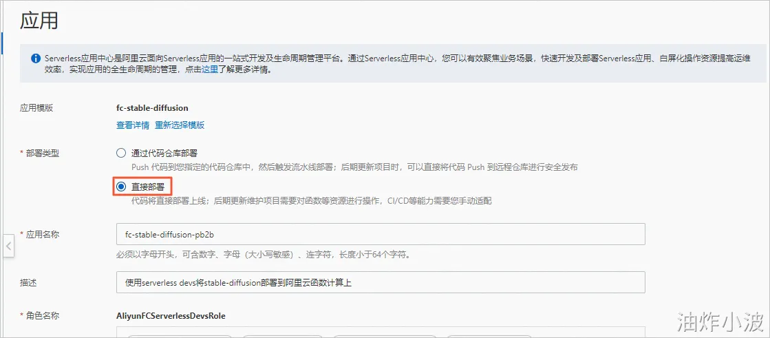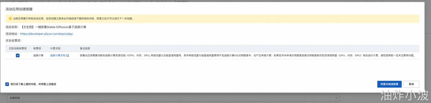 注意:部署应用之后会产生函数计算资源使用费用,计费情况详情请参考计费概述。
