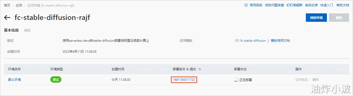 13. 在部署版本页面,请您耐心等待部署状态变为部署成功,在部署时您也可以查看日志观察应用部署情况。