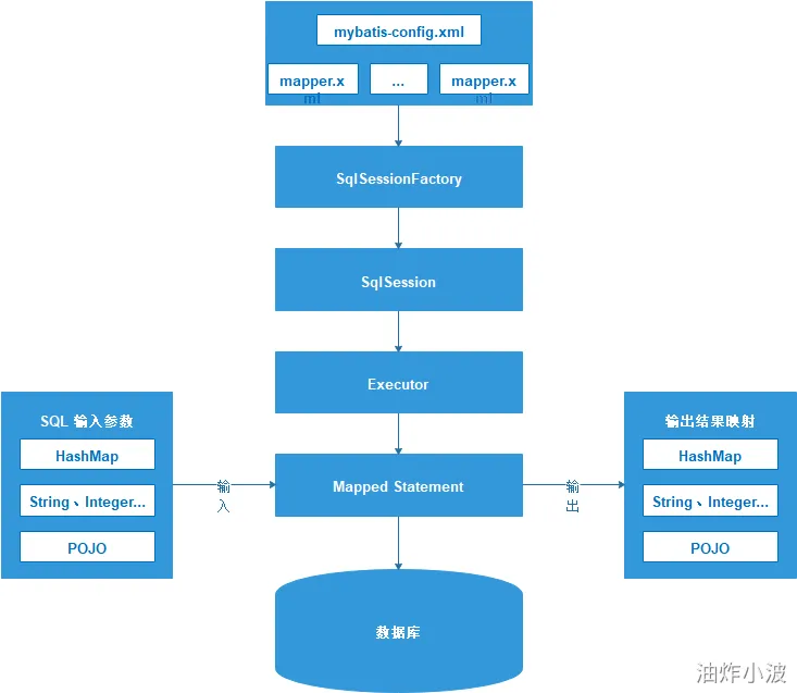 5. Mapped Statement对sql执行输入参数进行定义,包括HashMap、基本类型、pojo,Executor通过 Mapped Statement在执行sql前将输入的java对象映射至sql中,输入参数映射就是jdbc编程中对preparedStatement设置参数;