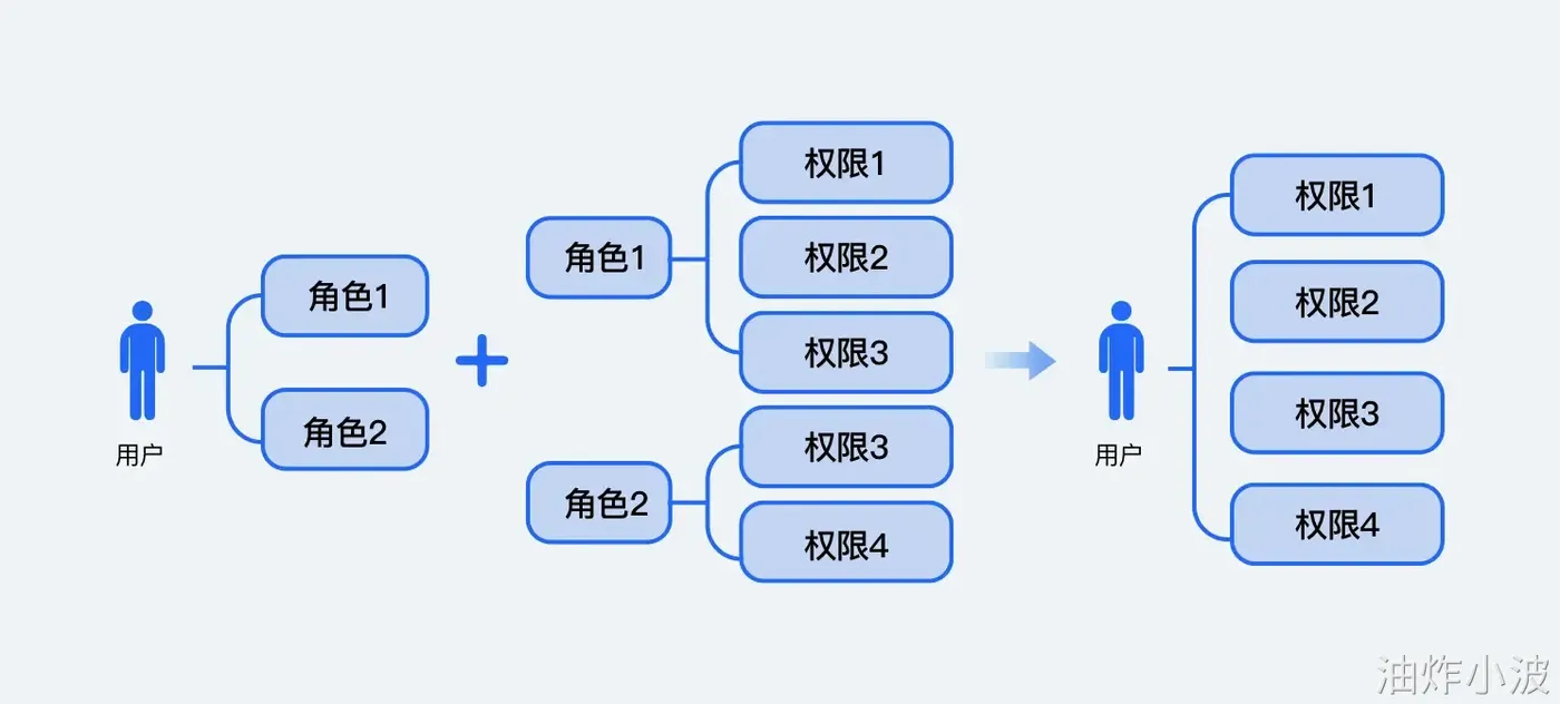 而一个用户的权限信息往往是多个角色叠加