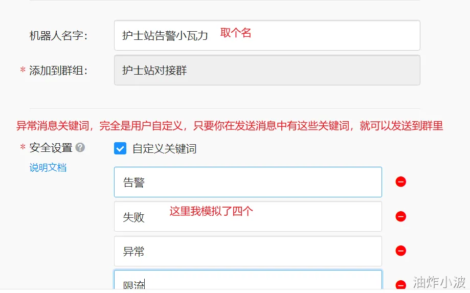 // 2-3 设置消息内容(必须匹配关键词),工作中这里就对应error日志