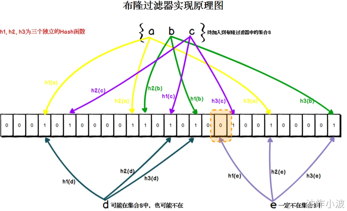 由于哈希函数的有限性,不同的元素可能会映射到相同的位置上,这种情况下即使元素不在布隆过滤器中可能产生误判,即布隆过滤器判断元素在集合中。