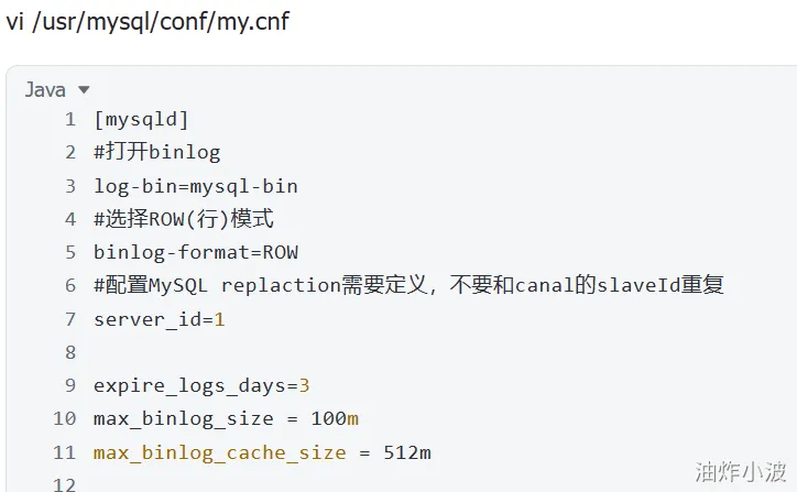 server-id:用于标识服务器的唯一 ID,这对于多服务器环境非常重要。log_bin:指定是否启用 Binlog 以及 Binlog 文件的保存位置。binlog_format:定义 Binlog 的格式,如 STATEMENT, ROW 或 MIXED。expire_logs_days:定义 Binlog 文件保留的时间,超过这个时间的文件会被自动删除。max_binlog_size:单个 Binlog 文件的最大大小,达到这个大小后会自动创建新的文件。