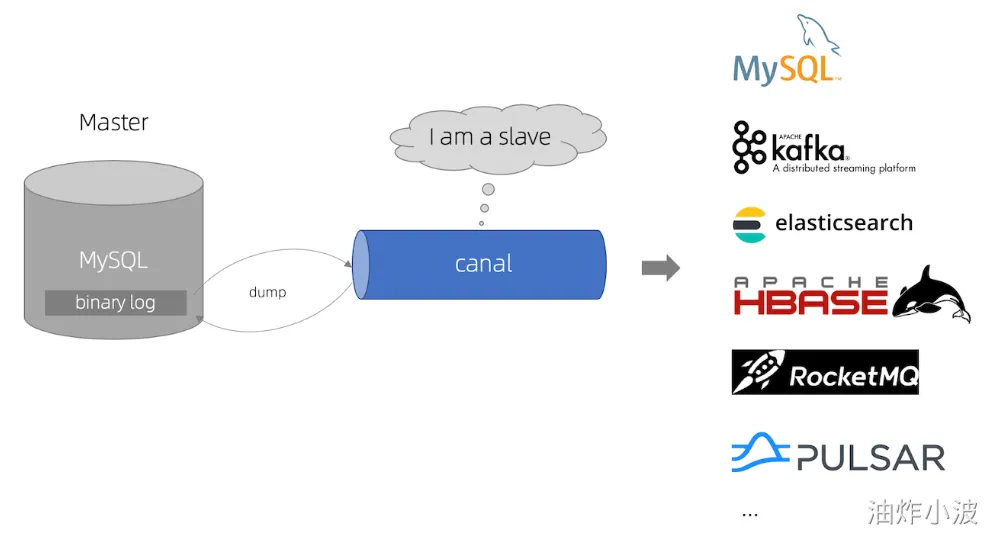 1、Canal模拟 MySQL slave 的交互协议,伪装自己为 MySQL slave ,向 MySQL master 发送dump 协议