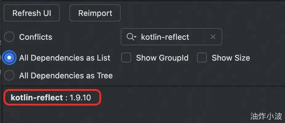 于是去工程里看了一下kotlin-reflect依赖,仍然是正常引入的。