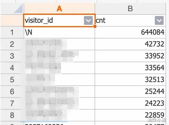 因为宽表代码中,主表是流量/成交/ipv等事实详单数据,join的右表都是标签类维表(主键唯一),所以可以判断倾斜一定是发生在左表上。对左表的关联key进行汇总统计。