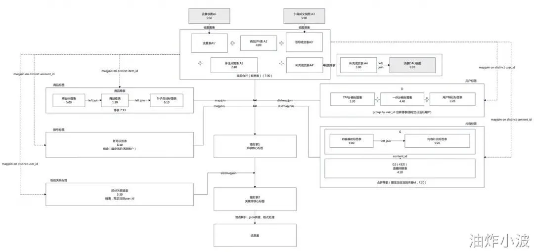 梳理完代码主干链路之后,可以看出来加工逻辑并不复杂,其实就是做了详单事实表和多张维度标签表的汇总拼接,产出一张字段较全的大宽表。接下来简单分析一下这个任务里存在哪些问题。