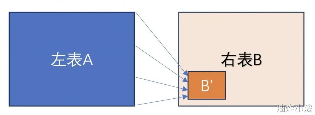 全量标签表B中只有一小部分B'实际关联到了左表A