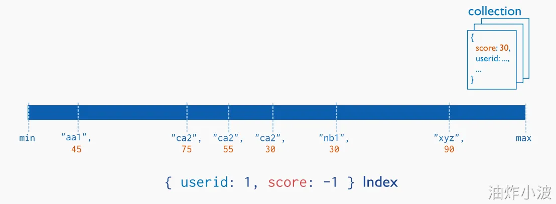 MongoDB还支持多个字段的用户定义索引,即复合索引(Compound Index)。复合索引中列出的字段顺序具有重要意义。例如,如果复合索引由 { userid: 1, score: -1 } 组成,则索引首先按userid正序排序,然后在每个userid的值内,再在按score倒序排序。