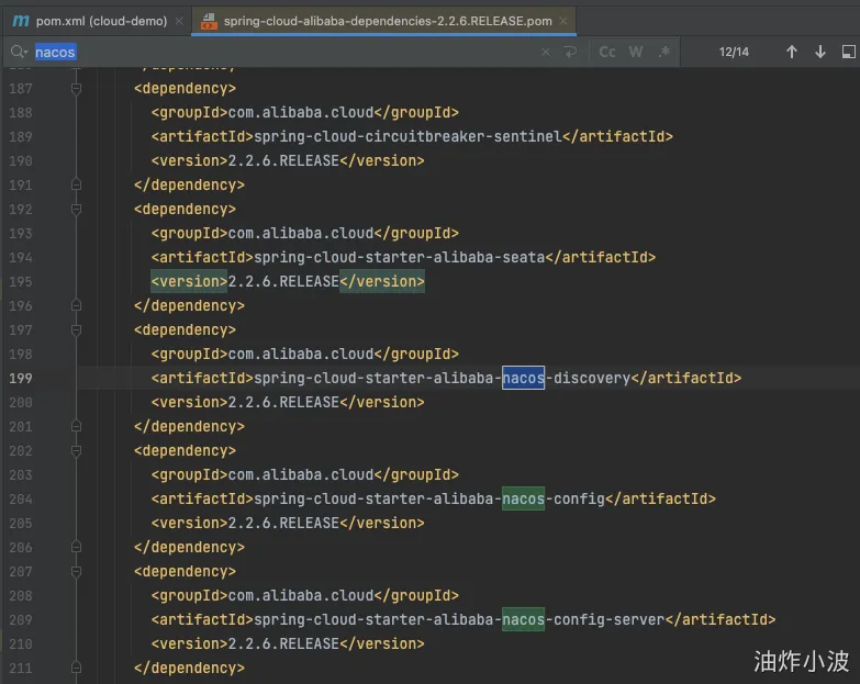 <!--nacos依赖--> <dependency> <groupId>com.alibaba.cloud</groupId> <artifactId>spring-cloud-alibaba-dependencies</artifactId> <version>2.2.6.RELEASE</version> <type>pom</type> <scope>import</scope> </dependency>