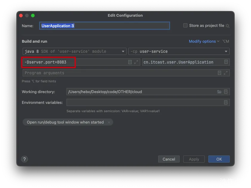 - 复制一个新的userApplicatio3启动类,设置其启动端口:-Dserver.port=8083