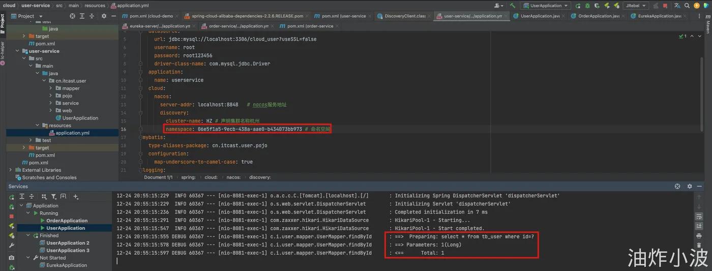 我们修改user-service的配置文件,增加namespace,并重启服务再次访问会发现服务恢复正常
