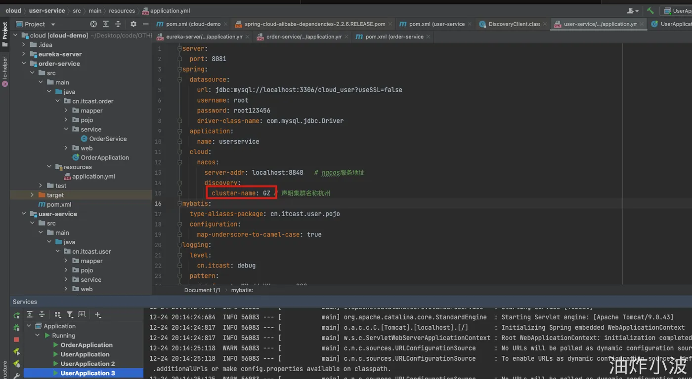 cloud: nacos: server-addr: localhost:8848 # nacos服务地址 discovery: cluster-name: HZ # 声明集群名称杭州