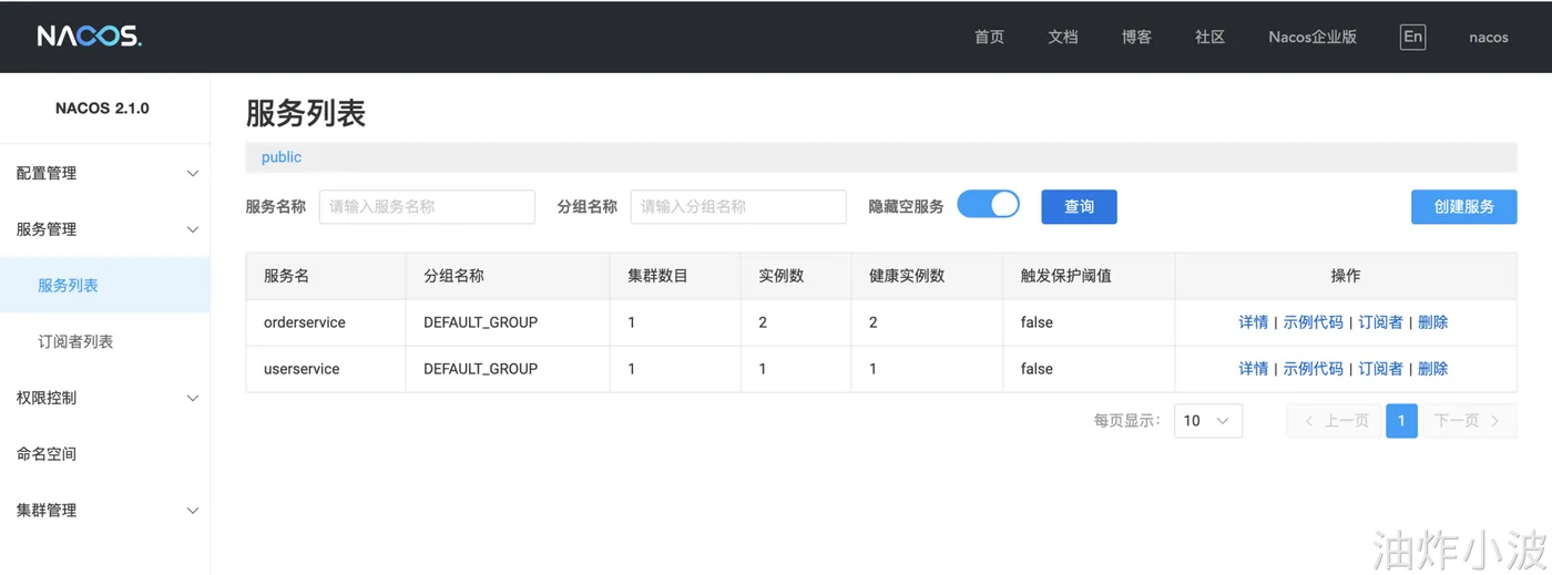 启动应用后访问Nacos会发现服务已完成注册