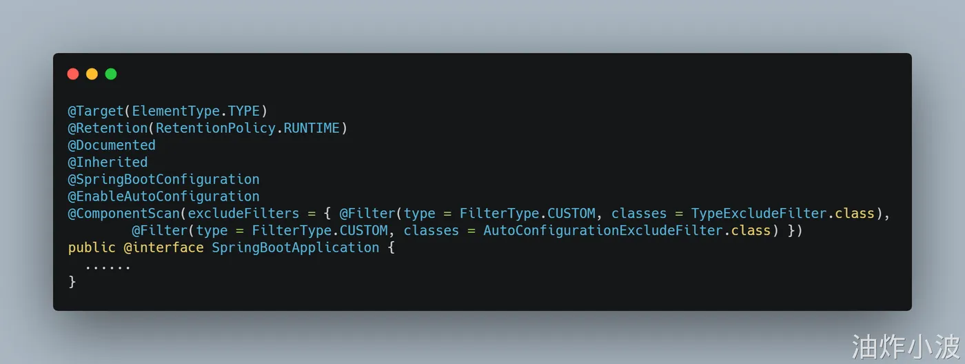 @SpringBootApplication这个组合注解,主要分4个元注解+3个自定义注解: