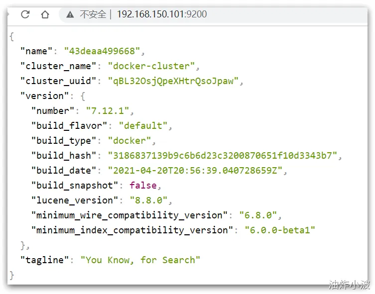 在浏览器中输入:http://192.168.150.101:9200 即可看到elasticsearch的响应结果: