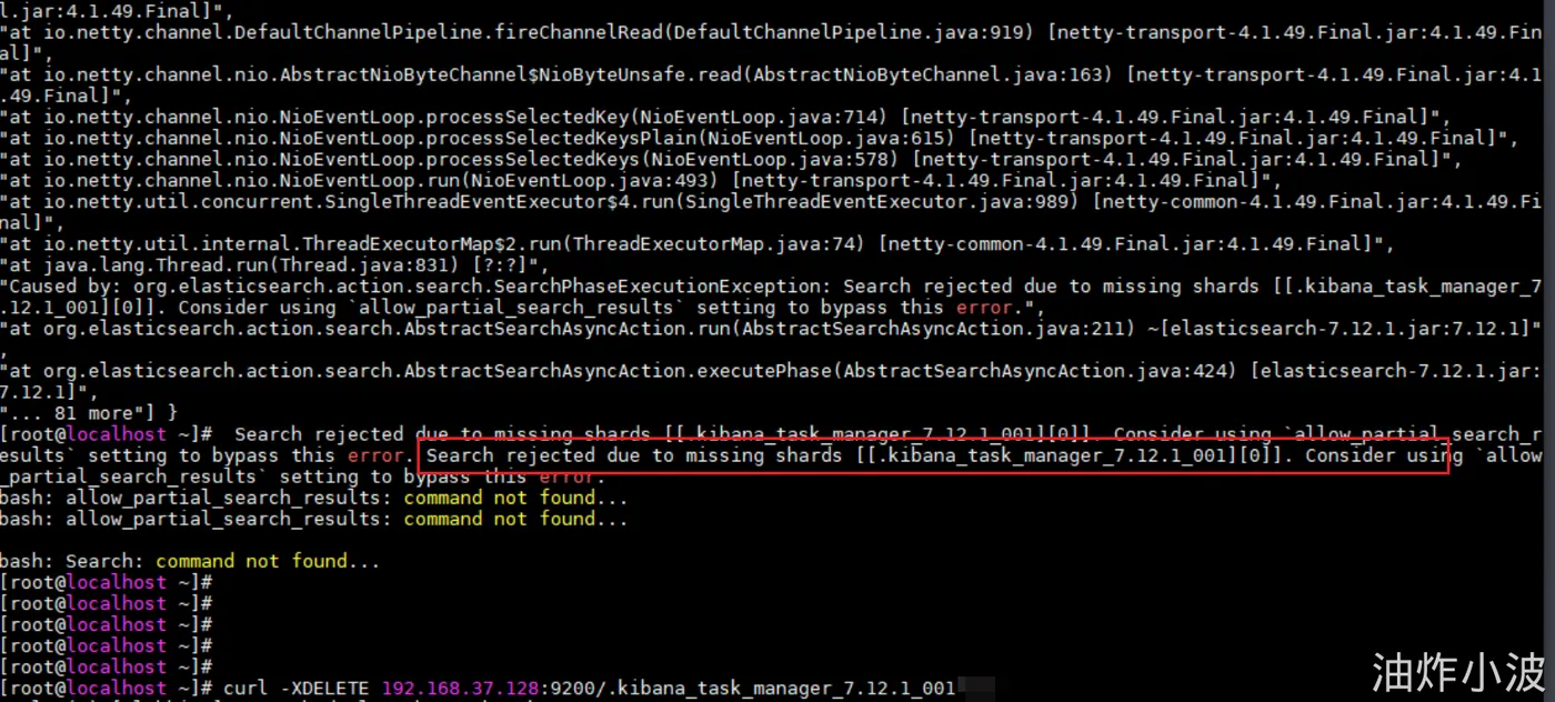 curl -XDELETE 192.168.37.128:9200/.KIBANA_TASK_MANAGER_7.12.1_001