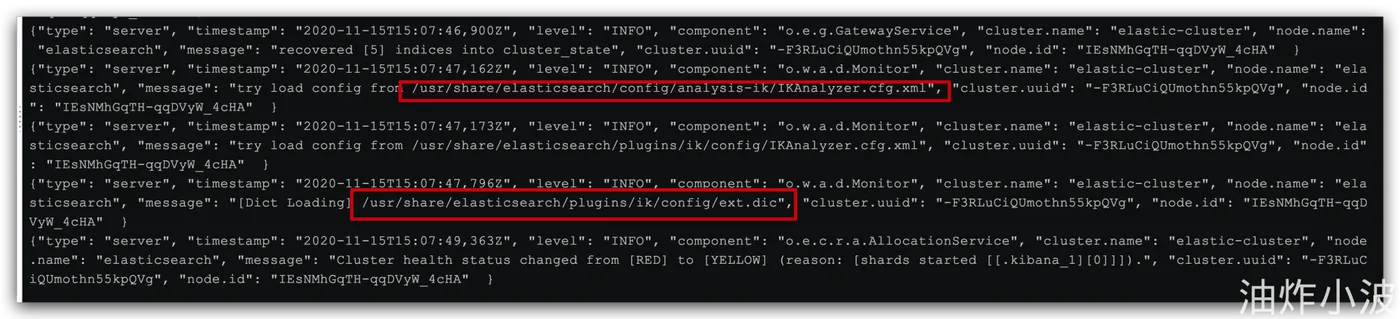 # 查看es日志 docker logs -f es