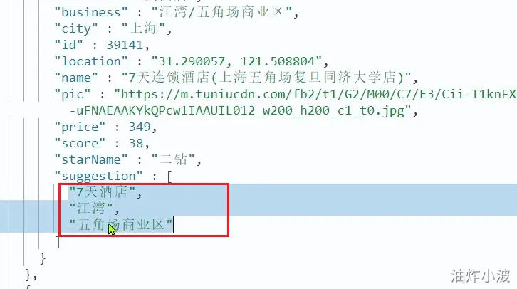 重新执行之前编写的导入数据功能,可以看到新的酒店数据中包含了suggestion: