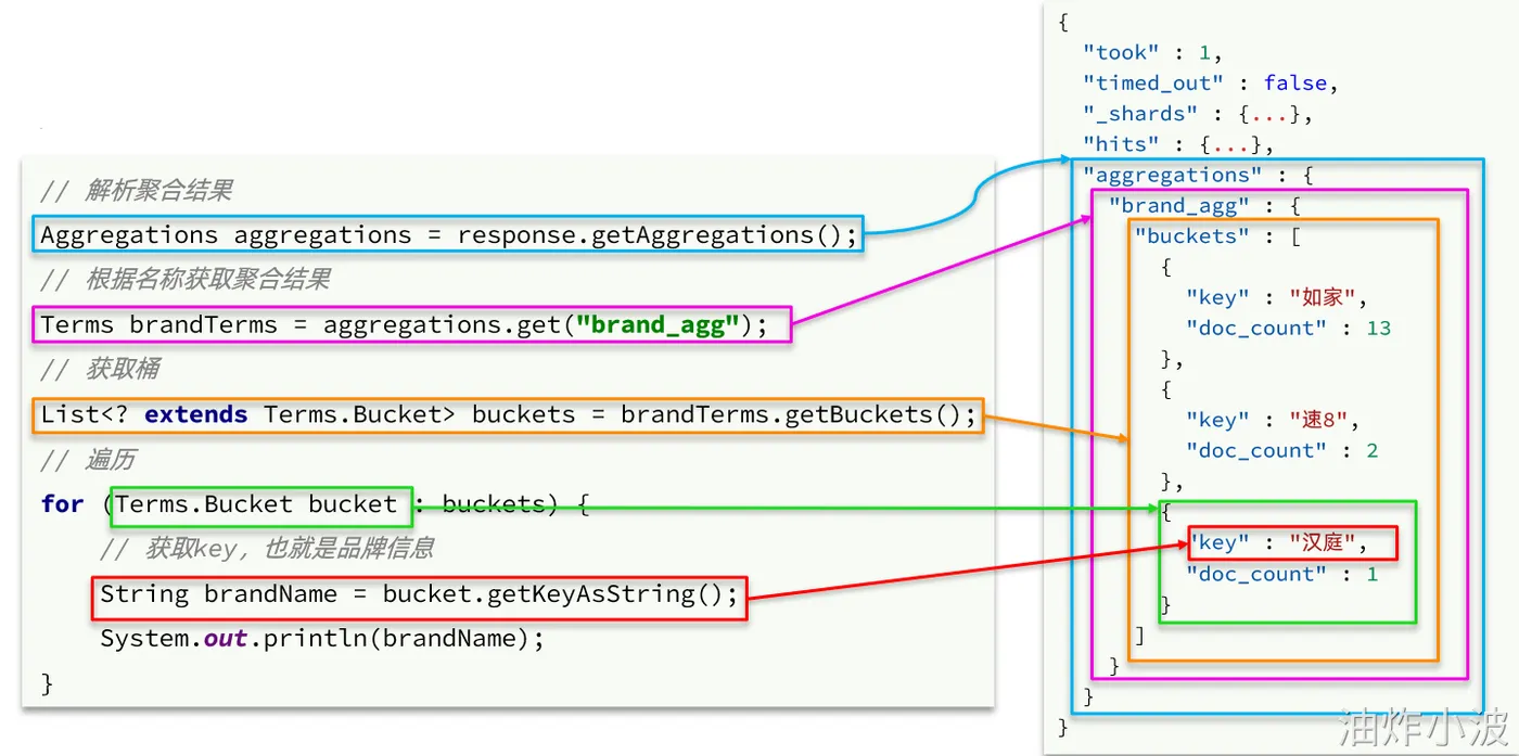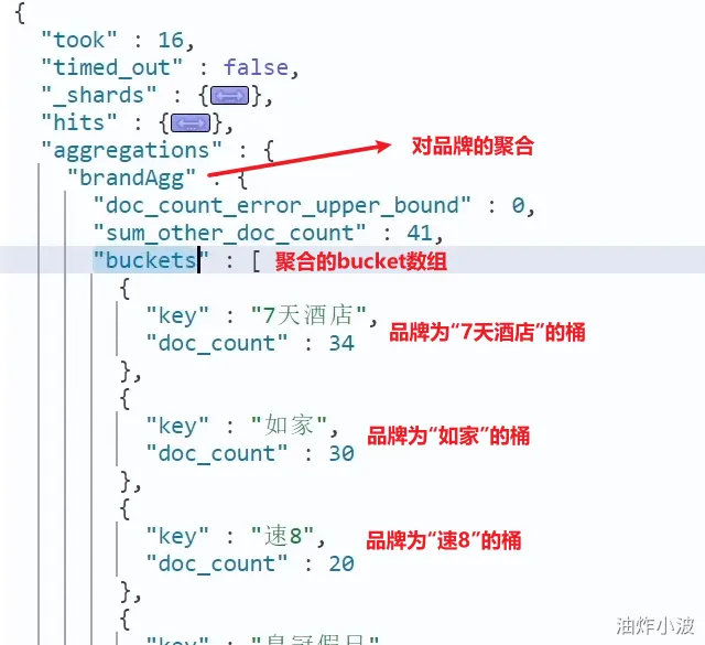 聚合的结果也与查询结果不同,API也比较特殊。不过同样是JSON逐层解析: