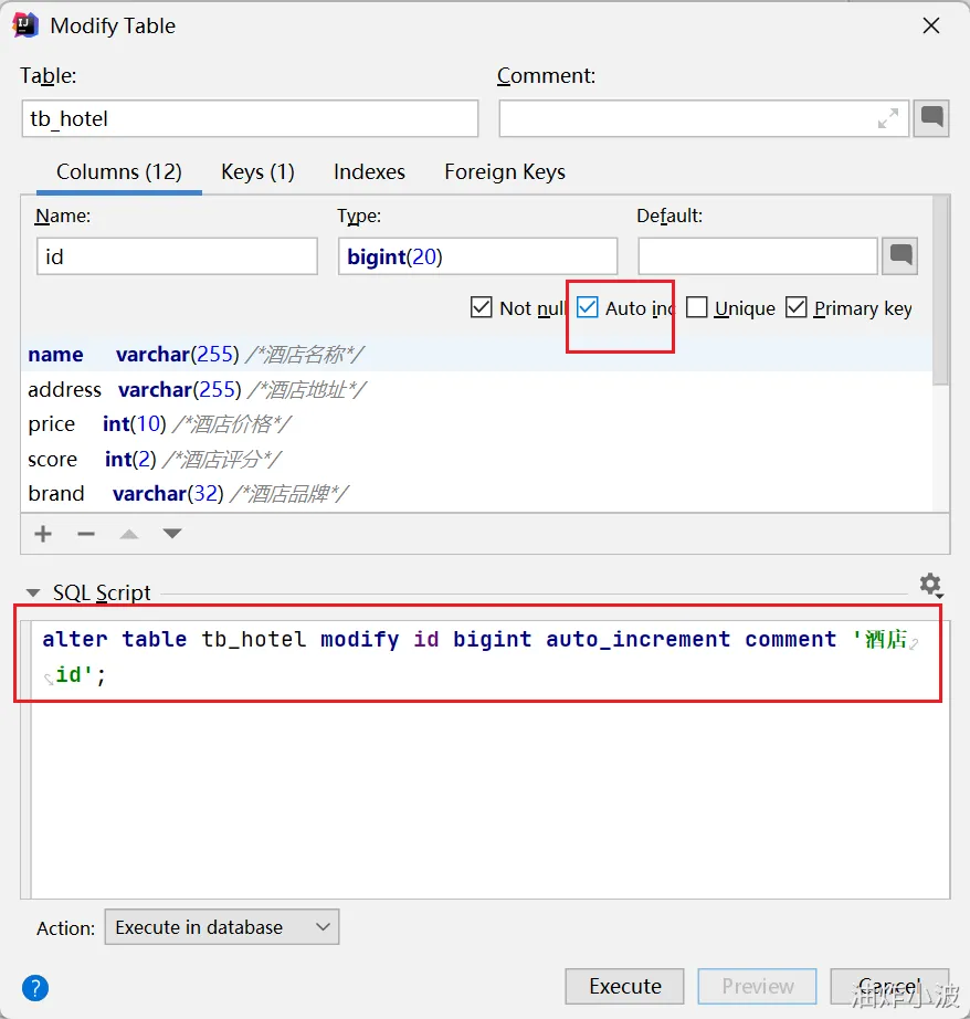 alter table tb_hotel modify id bigint auto_increment comment '酒店id';