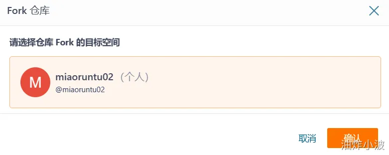 然后选择目标空间进行复制,Fork即拷贝远程仓库:https://gitee.com/Herbbbb/hmall 项目到自己的仓库。