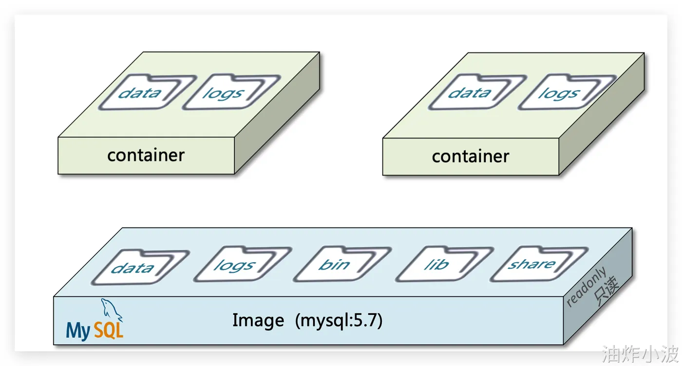 三者关系如上所示,注意:镜像都是只读的。