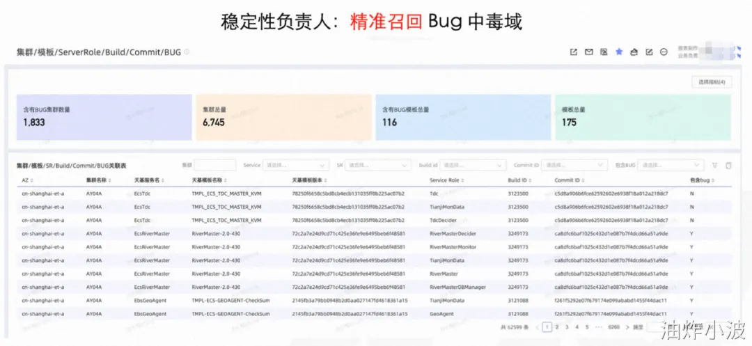 运维平台可以集成git-poison来检查线上部署的服务版本是否存在中毒情况。线上风险一目了然。尤其是发现一个新bug后,值班同学可以立即投毒,并通过该页面获取该bug影响的范围。