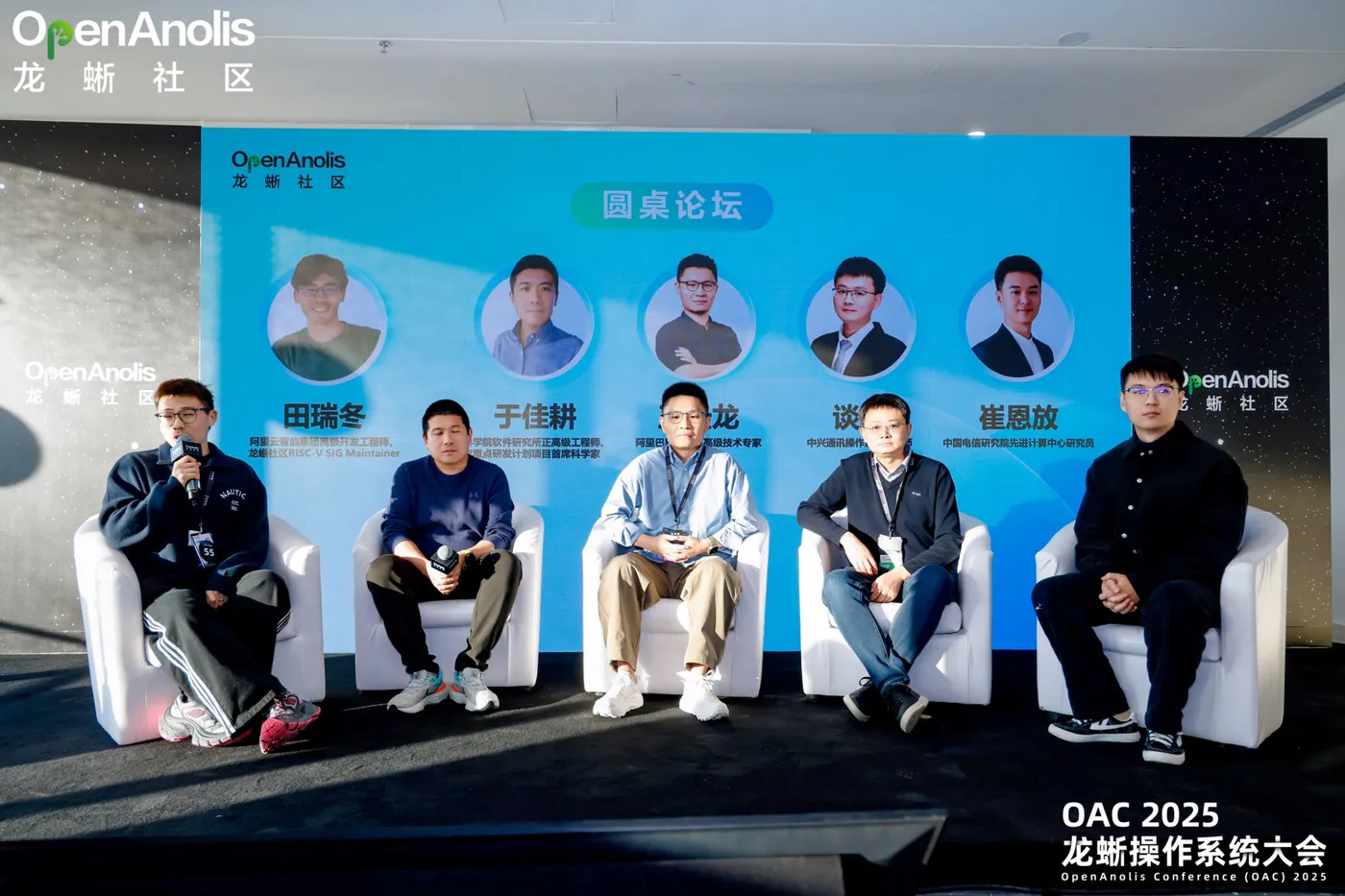 近日,2025 龙蜥操作系统大会在京顺利落幕,由中兴通讯操作系统产品规划总工徐立锋,中国科学院软件研究所工程师、如意 RISC-V 社区运营丁欣,阿里巴巴达摩院高级合作伙伴运营专家朱祯贞,龙蜥社区运营委员会副主席、龙蜥智算基础设施联盟秘书处负责人金美琴联合出品的 RISC-V 分论坛也圆满举办。本论坛汇聚 RISC-V 芯片厂商、云服务提供商及顶尖科研机构代表,以 “软硬协同” 为核心主线,围绕系统层适配优化、芯片与软件协同创新、开源生态标准化三大维度展开深度研讨。通过前沿技术案例分享、行业大咖圆桌对话及 Anolis OS RISC-V 版本特性展示,本论坛成为高效的技术交流与合作平台,充分展示了 RISC-V 架构在服务器、边缘计算等高性能场景的商业化落地,助力构建开放共赢的算力新生态。