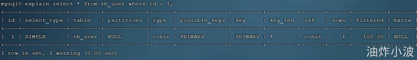 这个我们可以借助于MySQL中提供的 explain 关键字,在查询的SQL语句之前,加上explain来查询SQL语句的执行计划。
