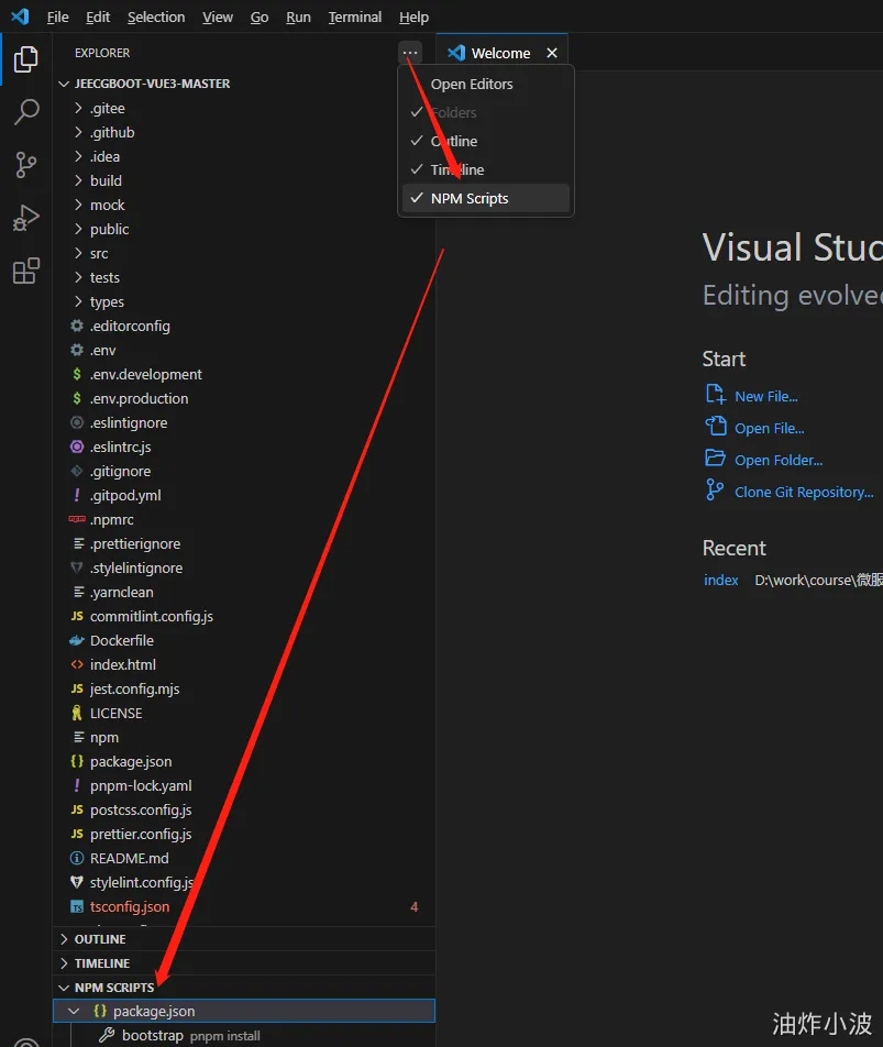 - 确保打开了:NPM Scripts