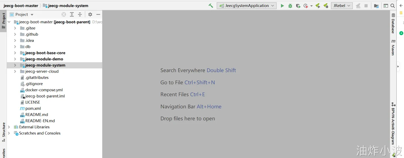 找到类 :jeecg-system-start/src/main/java/org/jeecg/JeecgSystemApplication.java ,右键执行启动