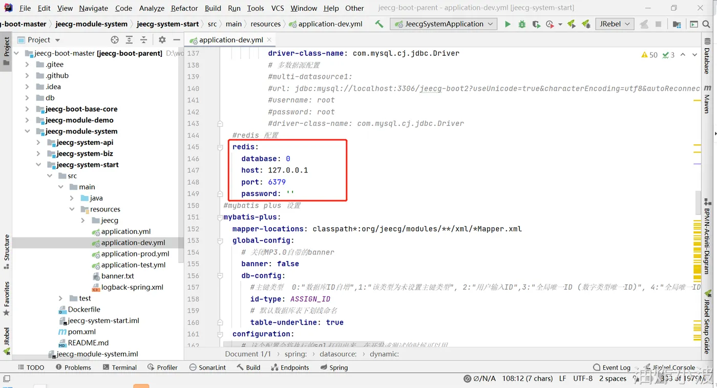 - 文件路径:jeecg-module-system/jeecg-system-start/src/main/resources/application-dev.yml